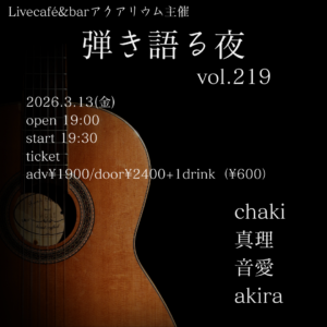 liveaquarium カレンダー カレンダーに追加 Timely カレンダーに追加 Google に追加 Outlook に追加 Apple カレンダーに追加 他のカレンダーに追加 XML ファイルとしてエクスポート 日時: 2026年3月13日 @ 19:00 – 21:30 2026-03-13T19:00:00+09:00 2026-03-13T21:30:00+09:00 参加費: adv¥1900/door¥2400+1drink