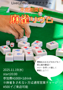 liveaquarium カレンダー カレンダーに追加 Timely カレンダーに追加 Google に追加 Outlook に追加 Apple カレンダーに追加 他のカレンダーに追加 XML ファイルとしてエクスポート 日時: 2025年11月19日 @ 19:00 – 23:59 2025-11-19T19:00:00+09:00 2025-11-19T23:59:00+09:00 参加費: ¥1000+1drink