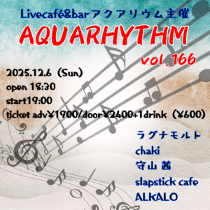 liveaquarium カレンダー カレンダーに追加 Timely カレンダーに追加 Google に追加 Outlook に追加 Apple カレンダーに追加 他のカレンダーに追加 XML ファイルとしてエクスポート 日時: 2025年12月6日 @ 18:30 – 21:30 2025-12-06T18:30:00+09:00 2025-12-06T21:30:00+09:00 参加費: adv¥1900/door¥2400+1drink