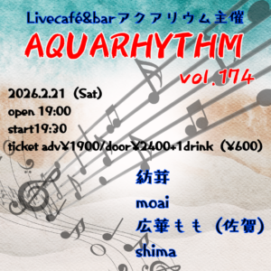 liveaquarium カレンダー カレンダーに追加 Timely カレンダーに追加 Google に追加 Outlook に追加 Apple カレンダーに追加 他のカレンダーに追加 XML ファイルとしてエクスポート 日時: 2026年2月21日 @ 18:30 – 21:30 2026-02-21T18:30:00+09:00 2026-02-21T21:30:00+09:00 参加費: adv¥1900/door¥2400+1drink